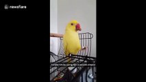 The moment is captured when Fawkes, a 10-month-old parrot, is frozen like a computer from the 90s when he gets a second almond on May 26 in Bulls, New Zealand.<br /><br />"He just stopped working! I had to help him out by grabbing one of the almonds from him so he could eat the other one first," said Rebecca, the filmer.
