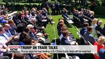 Despite the deadlock in trade negotiations between the U.S. and China,.... President Trump is optimistic that Washington will eventually strike a deal with Beijing.<br />But if the two sides fail,... the U.S. could slap China with additional tariffs.<br />Ko Roon-hee reports.<br />U.S. President Donald Trump says he has a feeling the United States is going to make a deal with China on trade.<br />Speaking to reporters at the White House on Wednesday, Trump said the two countries have a good relationship...although it has become a "little bit testy'' recently over tariffs.<br />Asked about the deadline for imposing tariffs on an additional 325-billion dollars worth of Chinese goods, he said there is none.<br /><br />"No I have no deadline. My deadline is what's up here. (Points to head.) We'll figure out the deadline. Nobody can quite figure it out."<br /><br />Although Trump said he plans to meet with Chinese President Xi Jinping later this month at the G20 leaders' summit in Osaka, he ramped up pressure on Beijing at the same time.<br />Trump said possible additional tariffs will be imposed...if negotiations break down.<br />This refers to possible levies on nearly all remaining Chinese imports that are not already covered by Washington's tariffs, including cellphones and clothing.<br /><br />Since last year, the world's biggest economies have exchanged tariffs on around 360 billion U.S. dollars worth of each other's goods.<br />The tensions have been escalating after the two sides recently raised some existing tariffs.<br />Since their trade negotiations ended in May without a deal..., Washington and Beijing have been blaming each other for the collapse of the talks.<br />Ko Roon-hee, Arirang News.<br />