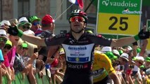 Elia Viviani (Deceuninck-Quick Step) a remporté la 4e étape du Tour de Suisse, ce mardi. L'Italien a devancé Michael Matthews (Sunweb) et l'ancien champion du monde Peter Sagan (Bora-hansgrohe) dont l'équipe a roulé dans les derniers kilomètres : "Elle a fait un travail parfait, a expliqué Sagan.