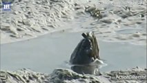 This curious dog saw a frog sitting perfectly still in his owner's pool and wanted to get a closer look. Adorably, he gently poked at the frog to get it to move.