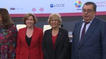 Imágenes de la alcaldesa de Madrid, Manuela Carmena, que ha participado en la inauguración de la 12ª Conferencia Internacional de Ciudades por el Comercio Justo celebrada en Madrid junto al delegado del Área de Salud, Seguridad y Emergencias, Javier Barbero.
