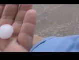 Las bolas de hielo han abollado las chapas de los coches y hecho añicos las lunas