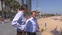 Pablo Casado pasea por La Barceloneta con su equipo
