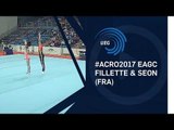 UEG Official – 12th Acrobatic Gymnastics European Championships for juniors, Rzeszow (POL), October 19 - 22, 2017<br /> <br />Mixed pair: Julien FILLETTE & Victoire SEON (FRA) 26.450<br />Balance final juniors ... 8th place<br /><br />Follow the European Union of Gymnastics (UEG) on its channels to stay up to date with the latest news! <br />YouTube: https://www.youtube.com/channel/UCqB9...<br />Facebook: https://www.facebook.com/UEGymnastics<br />Twitter: https://twitter.com/UEGymnastics<br />Website: http://www.ueg.org/