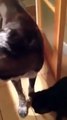 Dog Excitedly Rolls on Floor Trying to Befriend a Cat
