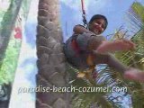 This guy worked across a difficult obstacle course on a monkey bar at the beach. He jumped and grasped the rings hanging from the bar and then sprang to grab a series of grips dangling. He then moved on to the pegboard to leading to the last obstruction. He unhooked and hooked the balls as he moved from one hold to the other, reaching the end of the course successfully.