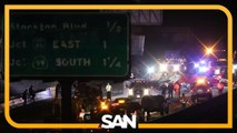 A truck clipped another driver and slammed straight into the wall of a highway in Dallas, Texas.<br /><br />The black truck indicated to turn into the left lane on the Interstate 35E but failed to see the car behind seeing them collide.<br /><br />After clipping the car, the truck then crashed head-on into the wall leaving a trail of debris.<br /><br />This incident was filmed on April 24.