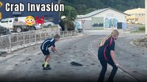 Morning school run turns memorable as kids clear road covered with migrating red crabs