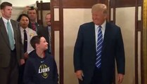 Trump surprises first White House tour group. With a portrait of then-first lady Hillary Clinton looming over his right shoulder, President Trump surprised a group of visitors Tuesday on the first public tour of the White House since the inauguration. Trump was greeted with boisterous applause and cheers from the group of about 50 tourists, mostly children, who were gathered in the basement of the White House residence.<br /><br />Shortly after 9:30 a.m., the president dropped in on the tour and then motioned for some of the children to join him for a picture. Only 10-year old Jack Cornish from Birmingham, Ala., was brave enough to take Trump up on his offer. <br /><br />After taking a picture with Cornish, a 5th grader at Briarwood Christian School, the president left the group to resume their 45-minute tour, according to the White House pool report.<br /><br />First lady Melania Trump announced the reopening of the White House, after it was closed to tours for several weeks, in a statement last month. <br /><br />“I am excited to reopen the White House to the hundreds of thousands of visitors who come each year. The White House is a remarkable and historic site and we are excited to share its beauty and history. I am committed to the restoration and preservation of our Nation’s most recognizable landmark,” she said.<br /><br />It is common for public tours to be briefly suspended during a presidential transition, but the hiatus took longer as the Trump administration hired staff and performed routine maintenance.<br /><br />The first lady's chief of staff, Lindsay Reynolds, said the White House Visitors Office was "using this time to tend to routine maintenance, updates and renovations along the tour route to ensure the guest experience is top notch." <br /><br />The tours are self-guided and requests for public tours are made through one's member of Congress. They are available from 7:30 a.m. to 11:30 a.m. Tuesday through Thursday and 7:30 a.m. to 1:30 p.m. Fridays and Saturdays, except for federal holidays.<br /><br />