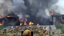 The devils came and attacked our army county. When they came in, they greeted them with heavy machine guns.