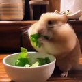 Ce hamster déguste un bol de plante. Tout mignon !