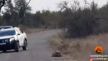 Hyena Tries Hiding from Wild Dogs in Plain Sight