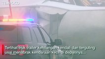 Sopir Kelelahan, Truk Eskrim Terguling Dihajar Truk Tronton