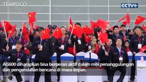 Pesawat amfibi terbesar buatan Cina AG600, atau Kunlong, menunjukkan kemampuan untuk penanggulangan bencana dan pengendalian kebakaran.