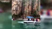 Detik-detik Tebing Batu di Danau Brasil Runtuh, Menimpa Perahu Turis