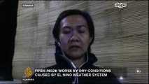 Fire fighters have been battling forest fires in Sumatra, to try and prevent deadly 'haze'.<br /><br />Forest and peatland fires in Riau Province are said to have burned 3,818 hectares of peatland, blanketing the region in smoke or 'haze'.<br /><br />The fires are typically caused by attempts to clear land for farming, sometimes for palm oil plantations. But with the land below often comprised of peat, which burns, they can rage out of control for months.<br /><br />Local authorities have distributed face masks to residents, while fire fighters have stepped up efforts to combat the fires.<br /><br />In late 2015, the haze, made worse by months of unusually dry weather, blanketed much of southeast Asia for months, causing many fatalities.<br /><br />Since then, Indonesia has stepped up efforts to prevent and contain forest fires.