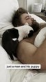Wakanda, the stray cat, tried to cuddle with Moscow, the French Bulldog. The dog stayed calm as the cat tried to snuggle with them. Wakanda even went ahead and sat on their face almost, but they gently moved away, allowing him to cuddle.