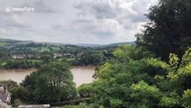 Emergency crews are battling to save a damaged dam in the town of Whaley Bridge, Derbyshire.<br /><br />Footage, filmed on August 2, shows an RAF helicopter carrying aggregate to drop around Toddbrook Reservoir.<br /><br />The dam wall partially collapsed on Thursday (August 1) afternoon following heavy downpours in the area. <br /><br />About 1,500 residents have been evacuated from Whaley Bridge as it is feared the dam could collapse and flood the town.<br /><br />The filmed of the clip told Newsflare: ‘’I live in Whaley bridge, above the dam. Luckily, we haven’t been evacuated but are very concerned for everyone in the village as the prospect of the dam bursting remains.’’