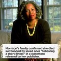 Toni Morrison, the first African American woman to win a Nobel Prize for writing, dies at 88. <br /><br />"Internationally acclaimed author Toni Morrison, whose prose spoke to the pain and resiliency in the African American experience, has died, her family and her publisher announced Tuesday.<br /><br />She was 88.<br /><br />Morrison died Monday night at the Montefiore Medical Center in New York, publisher Alfred A. Knopf said in a statement.<br /><br />She was awarded the 1993 Nobel Prize for Literature, the first African American woman to be so honored. Judges hailed her as one “who in novels characterized by visionary force and poetic import, gives life to an essential aspect of American reality.”<br /><br />She was also bestowed America's highest civilian honor, the Presidential Medal of Freedom, in 2012.<br /><br />Her novels included "Beloved," "The Bluest Eye," "Sula," "Song of Solomon," "Tar Baby," "Jazz," "Paradise," "Gold Help the Child," "Home," "A Mercy" and "Love."<br /><br />"Morrison’s novels were celebrated and embraced by booksellers, critics, educators, readers and librarians," Morrison's publisher said Tuesday. "Her work also ignited controversy, notably in school districts that tried to ban her books. Few American writers won more awards for their books and writing."