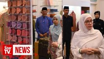 Raja Permaisuri Agong Tunku Hajah Azizah Aminah Maimunah Iskandariah visited the Tenun Pahang Diraja Felda gallery in Pekan on Thursday.<br /><br />The woven fabric gained popularity among foreign tourists after the Queen selected Tenun Pahang as her outfit to be worn for the installation ceremony of the 16th Yang di-Pertuan Agong recently.