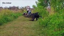 Massive gator slowly strolls past visitors at nature center