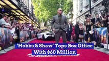 'Hobbs & Shaw' Tops Box Office <br />for Second Straight Week<br />.<br />The 'Fast & Furious' spinoff earned another <br />$25.4 million at the domestic box office.<br />.<br />'Hobbs & Shaw' has now made <br />$108.5 million domestically and <br />$332.6 million at the global box office.<br />.<br />Dwayne Johnson and Jason Statham star in the <br />first spinoff of the 'Fast & Furious' series.<br />.<br />The film also stars Idris Elba, <br />Helen Mirren and Vanessa Kirby.<br />.<br />Guillermo del Toro's 'Scary Stories to Tell in the Dark' finished at No. 2 with $20.8 million. <br />.<br />The team at CBS Films are thrilled that moviegoers are embracing the world of 'Scary Stories.' It's particularly satisfying to see families experiencing the fun of the <br />movie together.<br />, Guillermo del Toro, via statement.<br />Disney’s 'The Lion King' finished at No. 3 <br />with $20 million in its fifth weekend.<br />.<br />'The Lion King' is now Disney's highest-grossing "live-action" release with $1.3 billion worldwide.