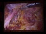 Adhesion between the uterine anterior wall and the abdominal wall which are due to previous Caesarean Section are separated in preparation for total Laparoscopic hysterectomy. - Prof Zion Ben Rafael -