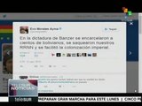 Coup d'etat in Bolivia. Report to the commander in chief of the Bolivian armed forces, General Remberto Iriarte Paz: -For Argentine television there are many Argentines, millions of Argentines who suffer from Bolivia, how is this process gestated and why? (Expresses that his country rose against the communist process) Image with the people gathered in front of the Burned Palace. Image with the facade of the building, you can also see the holes of the projectiles that hit its front. Report to the President of Bolivia, General Hugo Banzer: - Respect the fate of General Juan Jose Torres Gonzalez? - Synthetically at the internal level and at the international level? Close-ups of Argentine journalist Enrique Llamas de Madariaga covering the events of the Coup d'etat. Report to Dr. Mario Gutierrez Gutierrez (Bolivian Socialist Falange): - What kind of political platform do you have within what we could call the spectrum, that is, they are from the left, they are in the middle, they are from the right? - That is, a purely nationalist line? - Could it be located, for example, with other American-type movements? -With respect to foreign policy with the sister countries? Image of people cheering on Gutierrez. In Perez Velasco Square a true crowd has gathered to listen to the president of the National Revolutionary Movement, Victor Paz Estenssoro. Image with some civilians carrying weapons. Speech by Victor Paz Estenssoro referring to the lifting of the armed forces against communism and the overthrow of Juan Jose Torres Gonzalez. Poster close-up advertising Bridgestone tires. Building facade with billiard billiard Monte Carlo. (Jose Manuel Carrizo)<br />Date: 8/21/1971<br />Duration: 5 minutes 30 seconds<br />Film code: C-00858<br /><br />Copyright Archivo DiFilm - Buenos Aires - Argentina<br />Queries for archive material: difilm@sinectis.com.ar<br />Visit our website: http://www.difilm-argentina.com<br />Follow us on: https://twitter.com/archivodifilm