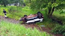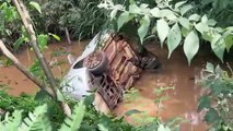 Homem fica em estado de choque ao capotar carro e parar em riacho