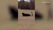 This young boy excitedly jumped on a slackline and exhibited amazing skills. He took turns in the air before landing on his feet and went back up without losing balance. He concluded the act by posing with his friend and shouted in joy.