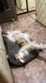 Toffee, the cat, was playing on the window seat inside the house. Another cat, Pudding, was lying comfortably in their bed just below the window area. Toffee was in a mood to play so she jumped on Pudding and landed on his mouth. Pudding got up from his bed and started chasing Toffee.