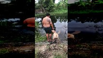 Occurred on August 14, 2019 / Annapolis, Maryland, USA<br /><br />Info from Licensor: "Kaden was in the water swimming while his little sister, Addie, was on the standup paddleboard watching her big brother as well as one of Capital SUP’s shop pup’s, Huck, the black lab, who is also watching from the pier. Kaden turned his back to swim back out to see the ducks and Huck jumped right on top of him dunking his whole body and head in the water."