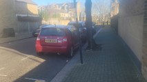 This guy had a hip surgery eight years ago and couldn't walk independently post that. He took the help of a fitness organization that made him do corrective exercises to prepare him to walk on his own. He walked a short stretch on the sidewalk outside the gym without the help of crutches or wheelchair as his trainers cheered him on.