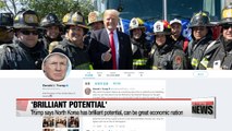 U.S. President Donald Trump has again touted the economic potential of North Korea,...IF it changes its ways.<br />Speaking at the G7 summit in France on Monday, Trump appeared to hint at the possible sanctions relief and other economic concessions his administration would offer,... as long as the regime agrees to dismantle its nuclear and ballistic missile programs.<br />Lee Seung-jae reports.<br />At a press conference alongside French President Emmanuel Macron at the G7 summit in France on Monday,... U.S. President Donald Trump once again stressed the amazing economic potential North Korea has yet to realize,... while also reiterating his good personal relationship with the regime's young leader.<br /><br />"I also say that by the way with respect to North Korea, Kim Jong Un, who I've gotten to know extremely well, the First Lady has gotten to know Kim Jong Un and I think she'd agree with me. He is a man with a country that has tremendous potential."<br />Trump also noted North Korea's geographical location between South Korea, China, and Russia,... saying that barring flying,... the only way to reach the South is through the North.<br />Observers say President Trump's remark about the regime's economic potential,... seems to allude to the sanctions relief and other economic concessions Washington would offer Pyeongyang,.... if it agrees to abandon its nuclear and ballistic missile programs.<br />While talks between the two sides have largely stalled since the two leaders' second summit in Vietnam in February,... Trump continued to express confidence in Kim Jong-un,... even dismissing the regime's recent series of short-range ballistic missile tests as "unimportant".<br />Asked about the possibility of another face-to-face with Kim,... Trump said they will "probably have one".<br />Earlier at the G7,... President Trump made similar remarks regarding the economic potential of Iran,... if it ends its nuclear program and becomes a responsible member of the international community.<br />Lee Seung-jae, Arirang News.<br />