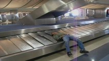 Sleeping Man Takes a Ride on Baggage Claim