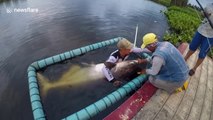 This colossal fish is quite the catch! A man wrestled this massive 230 lbs catfish for 40 minutes until he was able to reel it in. Buzz60’s Mercer Morrison has the story.