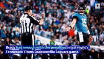 Tom Brady Stops Watching <br />Thursday Night Football Due <br />to 'Ridiculous Penalties'<br />.<br />Brady had enough with the penalties in last night's Tennessee Titans-Jacksonville Jaguars game.<br />.<br />Too many penalties. Just let us play!!!! #TENvsJAC <br />, Tom Brady, via Twitter.<br />I’m turning off this game I can’t watch these ridiculous penalties anymore #TENvsJAC <br />, Tom Brady, via Twitter.<br />15 penalties were called in the first half, including eight holding calls.<br />.<br />20 total penalties were called throughout the game.<br />The Titans had 12 penalties, their most <br />since Week 5 of the 2017 season.<br />.<br />Analyst Troy Aikman mentioned Brady's tweets during the television broadcast.<br />.<br />Tom Brady is one of the least controversial people we have in our game. He is league royalty. When he makes a statement like that, that should get somebody's attention.<br />, Troy Aikman, via NFL Network.<br />The Jaguars defeated the Titans 20-7 for their first win of 2019