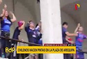 Arequipa: hinchas de la U. de Chile realizaron pintas en la Plaza de Armas