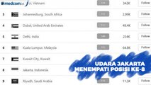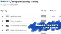 Jakarta menempati kota ke-3 paling berpolusi di dunia versi AirVisual hari ini. Tingkat polusi udara di Jakarta berada di atas kota Karachi, Pakistan.<br /> <br /><br /> <br />Berdasarkan data dari AirVisual Minggu, (22/09/2019), pukul 15.12 WIB, Air Quality Index (AQI) Jakarta berada di 151 alias kategori tidak sehat. Namun, tingkat polusi ini tidak tetap dan dapat berubah sewaktu-waktu. AQI mempunyai rentang nilai antara 0-500. Makin tinggi nilai AQI, artinya makin tinggi tingkat polusi udara di wilayah tersebut. Skor 0-5 berarti kualitas udara bagus, 51-100 berarti moderat, 101-150 tidak sehat bagi orang yang sensitif, 151-200 tidak sehat, 201-300 sangat tidak sehat, dan 301-500 ke atas berarti berbahaya.<br /> <br />Sumber: Air Visual<br />Udara Jakarta 22 September 2019: Tidak Sehat