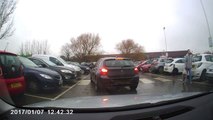 A man in Margate, England tries very hard to park his compact car on the street in front of a vape shop but he fails spectacularly, driving halfway up the curb and causing his mother to face-plant upon exiting the vehicle.<br /><br />"His mum gets out and immediately falls over, it was hilarious," said Justin Witys, the vape store owner who captured the epic fail.