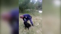 This man dressed as a green alien and pretended to be attacked by it. He ran in the garden outside his house. He even screamed for help while acting to get rid of the alien.