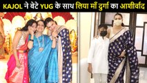 Kajol takes part in Durga Puja festivities with family. Kajol was spotted pandal-hopping with mother Tanuja and sister Tanishaa Mukerji today. The actresses also met Kajol's cousins Samrat and Sharbani at the pandal. <br /> <br />#Kajol #KajolDurgaPuja #KajolCousins