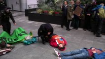Hundreds of Extinction Rebellion activists have attempted to shut down London City Airport by blocking the main entrance for passengers. Some protesters glued themselves to the floor. However, flights appear to be unaffected by the action. One protester was seen climbing on to the roof of the airport entrance. 83-year-old protester Phillip Kingston said: "I'm here for my grandchildren and all of their generation; for the poorest peoples who are suffering most from climate breakdown". Report by Jonesia. Like us on Facebook at http://www.facebook.com/itn and follow us on Twitter at http://twitter.com/itn