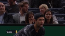 Alexander Zverev is through to the quarter finals of the Shanghai Masters following a straight sets 6-0 7-6 victory over Russia's Andrey Rublev.