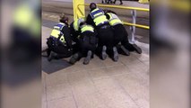 Police officers were seen sprinting through Manchester's Arndale Shopping Centre today (October 11) after a man attacked multiple people at random with a knife.<br /><br />Greater Manchester Police have confirmed that four people have been injured, including a man in his 50's, a 19-year-old woman and another woman.