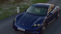 The new Porsche Taycan Turbo in blue Driving Video