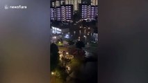 Water was seen gushing through the Shiroyama Dam in Kanagawa Prefecture, Japan, as Typhoon Hagibis hit the country on Saturday (October 12). <br /><br />The video was filmed in the early hours of the morning, hours before the operators of seven dams across Japan decided to discharge water due to the risk of them overflowing.<br /><br />Typhoon Hagibis brought heavy rain which caused mass flooding around the country. It was the worst storm to hit the country in decades, leaving at least 37 dead and 20 missing.<br /><br />Winds of up to 225km/h (140mph) slammed into eight prefectures around the country.