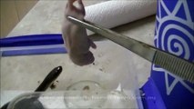 This red tegu lizard was fed a baby rat in its glass cage. It caught hold of the prey in its mouth and chewed on it slowly. The rat trembled and tried to escape. However, the lizard's grip was too strong and, it gulped its feast down instantly.