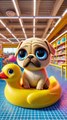 Sarge, the dog, was playing with an empty deflated rubber pool in the dog park. He was enthusiastically biting and throwing the rubber pool. He even rested for a while in between and then again started playing adorably with the rubber pool.