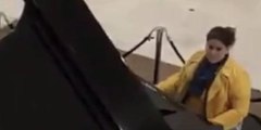 Una espontánea se encarama al piano de un centro comercial y toca el ‘Cara al Sol’